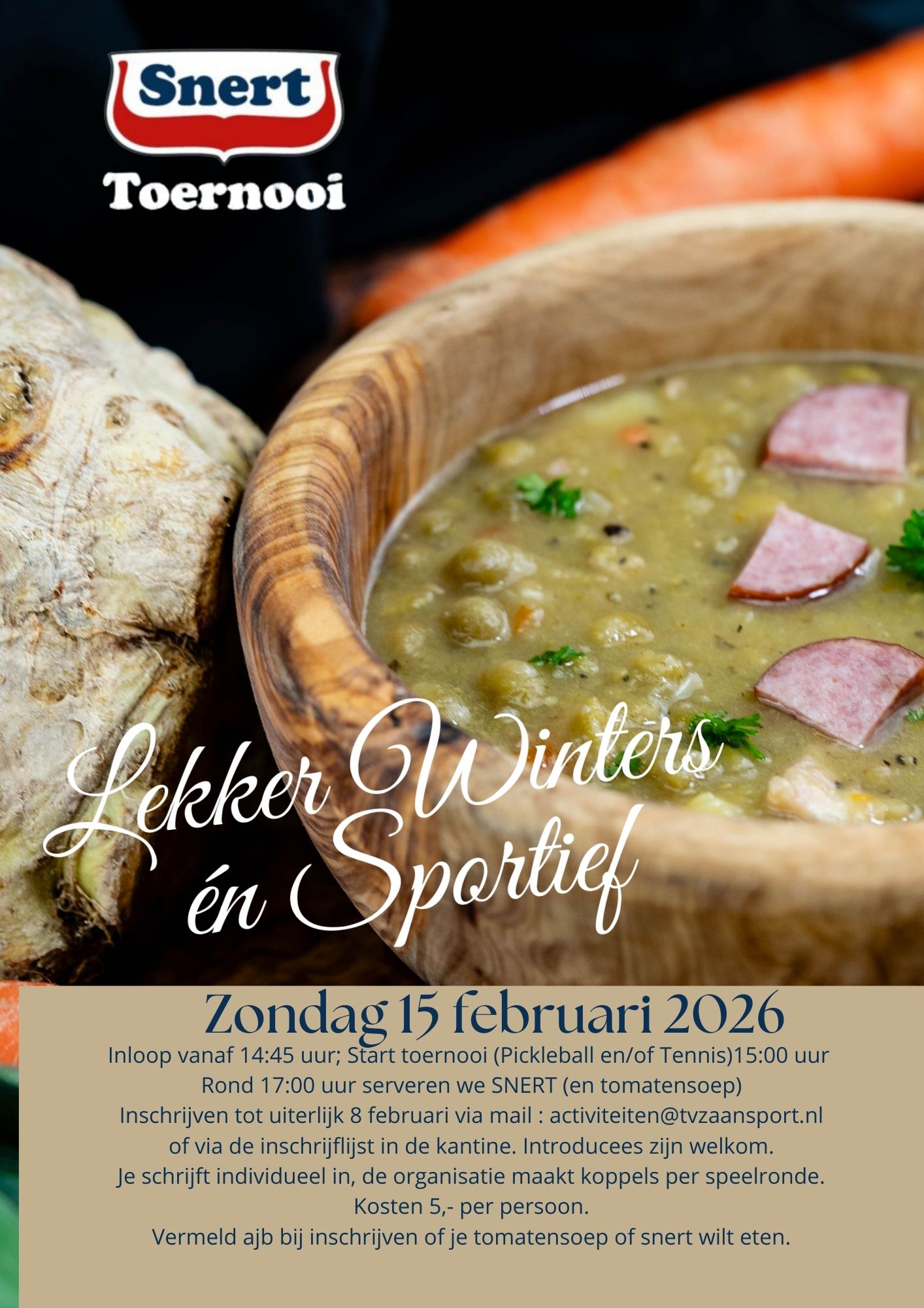 Vermeld ajb bij inschrijving of je tomatensoep of snert wilt eten.